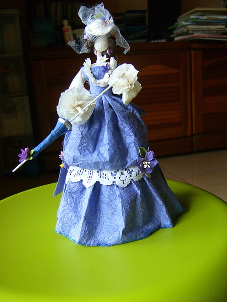 這是手染棉紙做的,搭配傳統皺紋紙和蕾絲、網紗等素材.質感又不一樣.