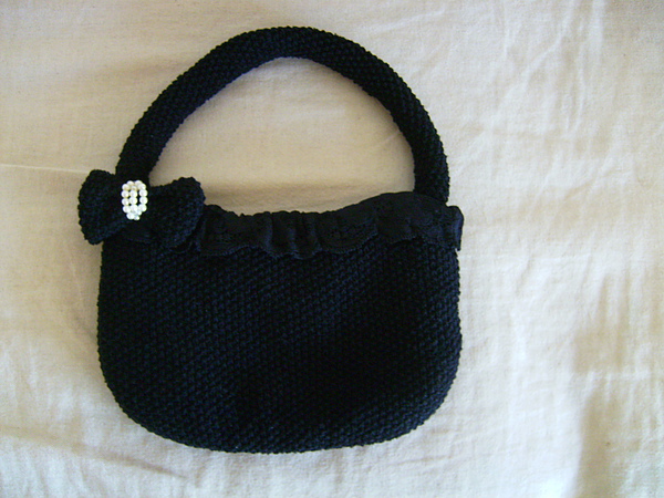 不要看它只是黑黑的小提包,它是服飾再生的產品,主要素材為毛衣,鑲上黑色蕾絲和珠珠,只是相片拍的不是很清楚.