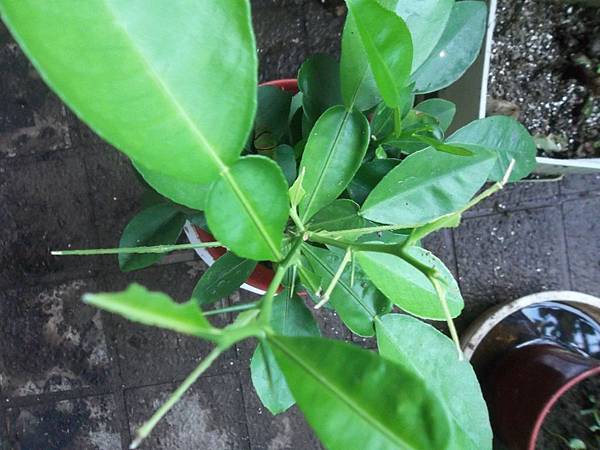 這兩天我發現檸檬嫩葉上,又有一隻鳳蝶的幼蟲(黑黑的很像鳥屎)