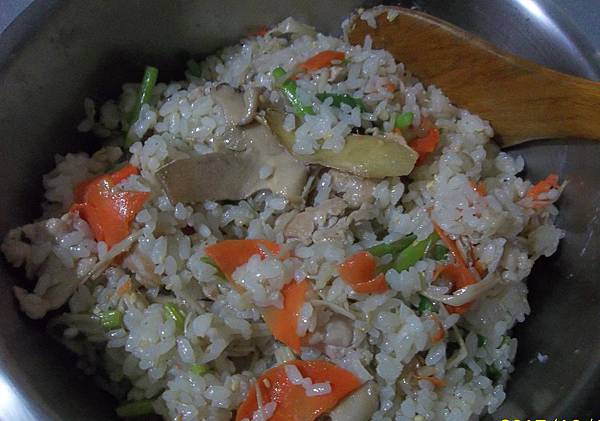 把煮好的飯,倒入炒菜鍋用鍋鏟拌勻即可