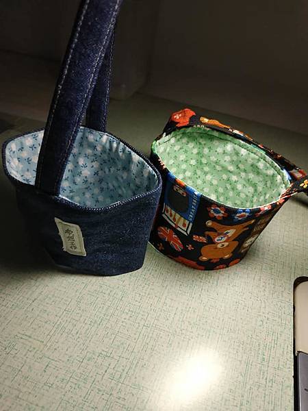 當媽的,馬上翻資料袋找版型做了一大一小兩個袋,讓他放在機車上