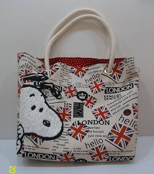 這五呎布已經做了三個包,這布的花色很適合史努比