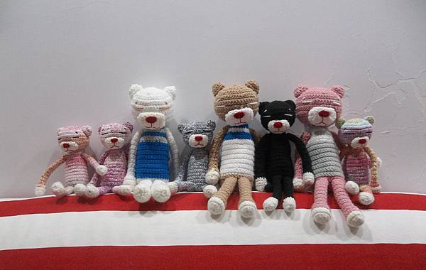 和女兒一起嘗試用同款線用不同號鈎針鈎出的貓