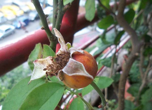 由於去年同時開了三朵,所以得到三顆玫瑰果實