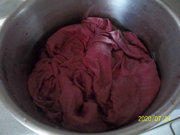 同片布再試染一次,(每次煮玉米,看到那美麗的水倒掉,真的覺得很可惜)
