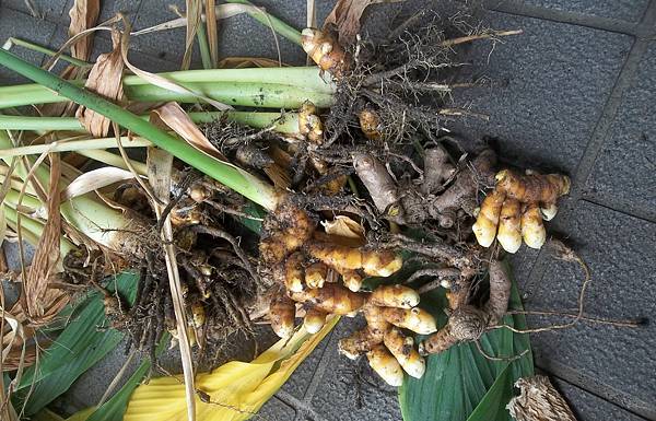 種了近十個月的薑黃收成