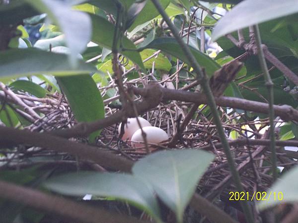 除夕的前一天(2/10)兒子跟我說陽台有鳥巢,還有兩枚蛋